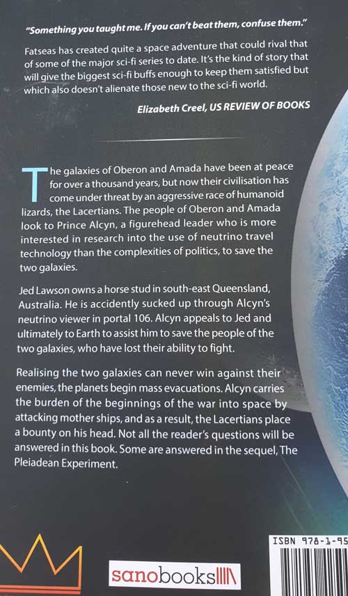 Realizing the two galaxies can never win against their enemies, the planets begin mass evacuations. Alcyn carries the burden of the beginnings of the war into space by attacking mother ships, and as a result, the Lacertians place a bounty on his head. Not all the readers' questions will be answered in this book. Some are answered in the sequel the Pleiadean Experiment.